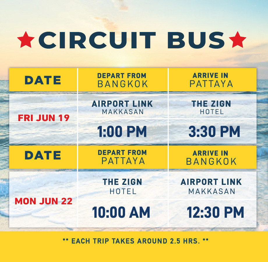 The Circuit Bus offers round-trip transportation between Bangkok and Pattaya and is the most reliable way to commute for the following reasons: